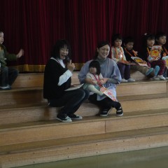 2月生まれのお友達は、担任の先生から色紙のプレゼントを首にかけてもらうと、とっても嬉しそうにしていました。