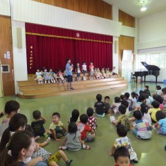 誕生児が入場すると拍手で迎えていました。お楽しみの「赤ずきん」の劇もとても楽しく見ていましたよ。