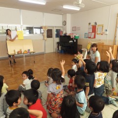 十五夜集会を行いました。お月見の由来を聞いたり、おたのしみを見たり、楽しんでいましたよ。