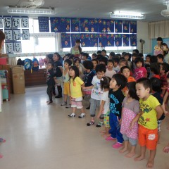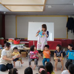 9月生まれの誕生児は前に出てきて元気良く返事をし、お友達から担任の先生お手製のプレゼントやお歌のプレゼントを受け取り、とても嬉しそうにしていました。