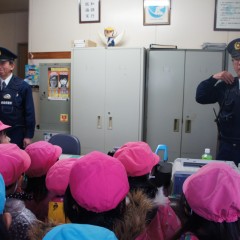今日は桜ケ丘駐在所へ行き、働く人の見学をしてきました。間近で見るおまわりさんにドキドキした表情を見せながらも「いつパトロールに行くんですか?」「どうしてサイレンを鳴らすんですか?」など、聞いてみたいことをたくさん質問していました。