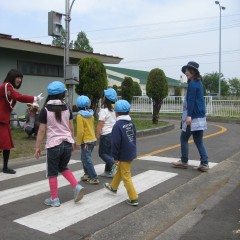 横断歩道の渡り方や信号の見方、車の死角についてなどを勉強してきました。