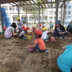 砂場では型抜きを使ってケーキ屋さんごっこをしたり、お山を作って楽しむ姿が見られましたよ♪