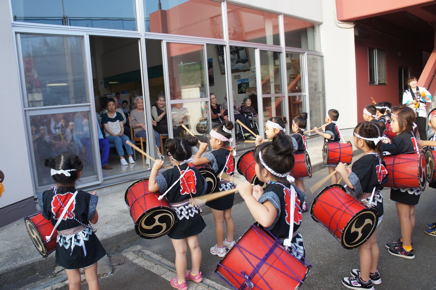 施設の方からの大きな拍手に、嬉しそうな表情をしていた子ども達でした。一生懸命太鼓をたたき、元気に「ヤーヤードー」と言う子ども達の姿を見て、涙を流して感動して下さる方もいましたよ。