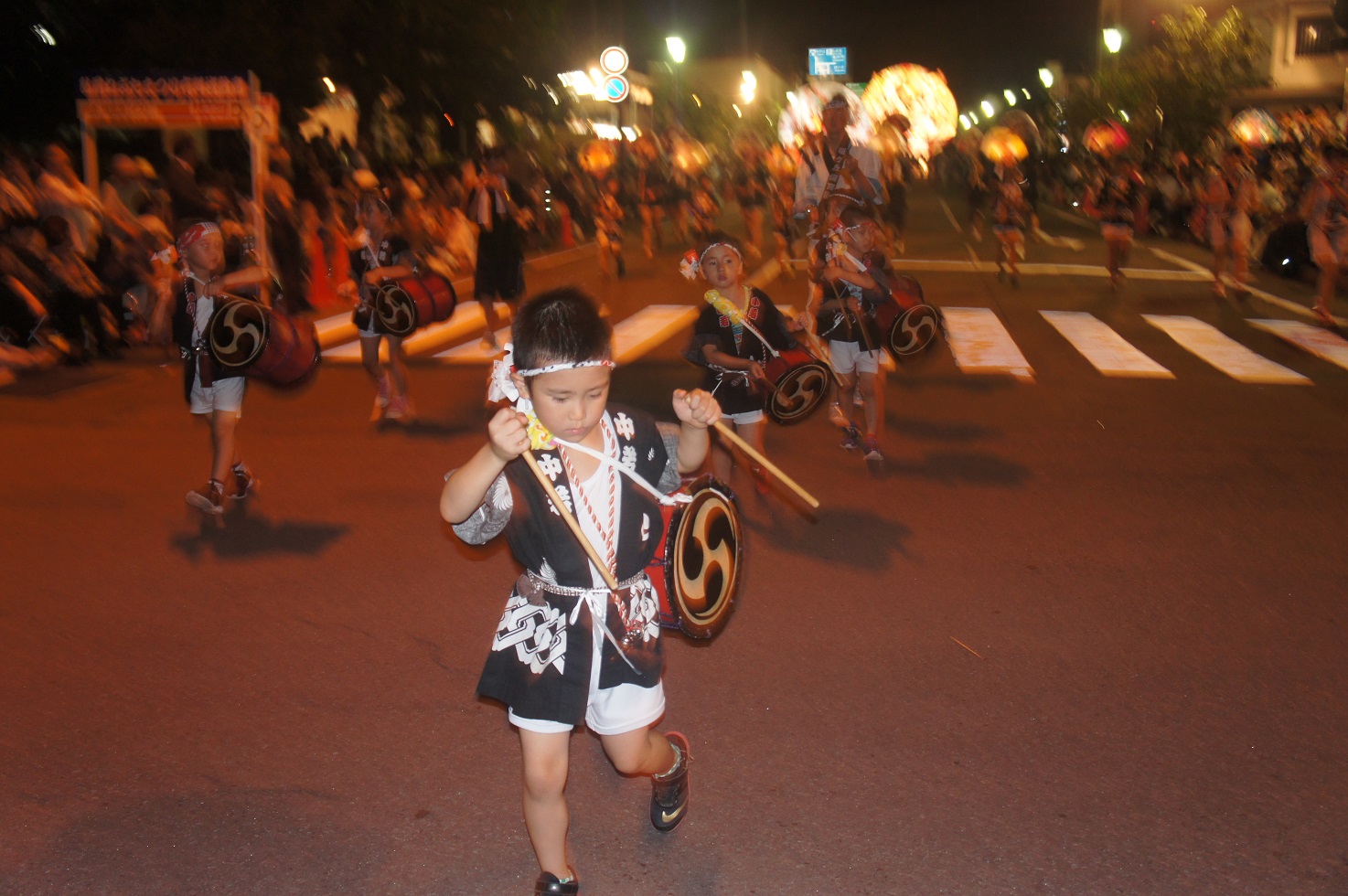 すみれ組は太鼓をたたき、さくら組は金魚ねぷたを持ち、たんぽぽ組、ちゅうりっぷ組はお家の人と手をつないでの参加でした。