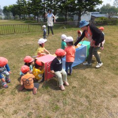 みんなで輪になって体操を楽しんだり、トンネルくぐりをして遊びましたよ☆