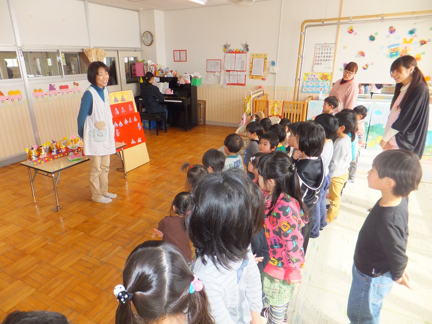 桃の節句集会では、「ひなまつり」の歌を歌ったり、由来をきいたり、興味を持ちながら楽しんで参加する様子が見られていました。ひな壇に、おだいりさまやおひなさまなど、どの場所にどの人形が座っているか、クイズを行うと、大きいクラスの子ども達はしっかりと理解し、順番に並べようと頑張っていましたよ。