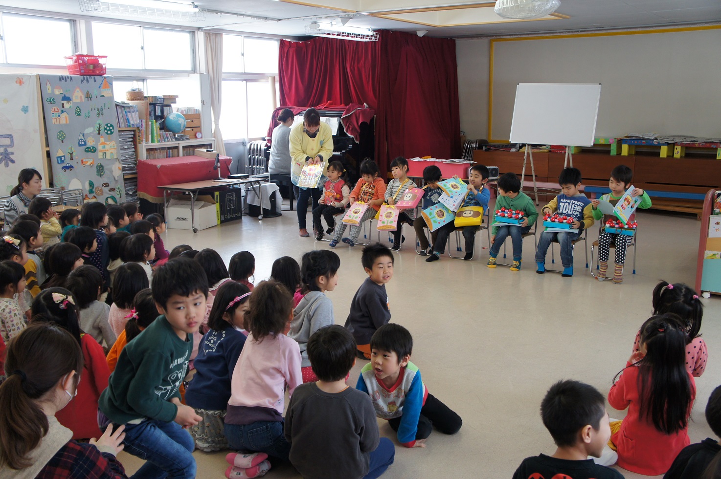今年度最後のお誕生会でした。3月生まれのお友だちは、名前を言ったりインタビューに答え、元気いっぱいに発表していました。プレゼントなど嬉しそうに受け取りおたのしみも集中してみていました。