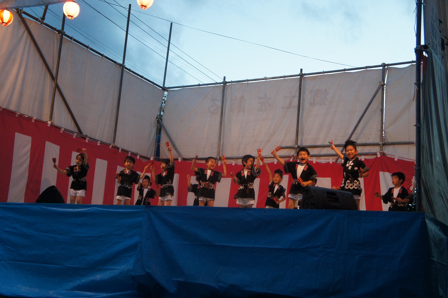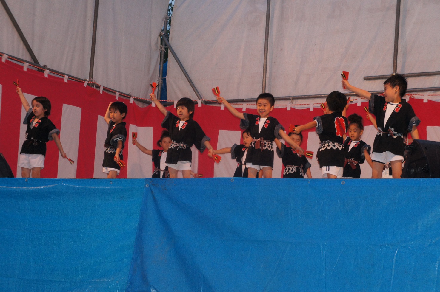 祭りの雰囲気を味わいながら、息を合わせて「どっこいしょーどっこいしょー!」と元気いっぱいに発表し、たくさんの拍手をもらっていました。