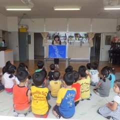 みんなで七夕の歌を歌ったり、人形シアターを見たり、行事の由来などの話しに耳を傾けていました。
