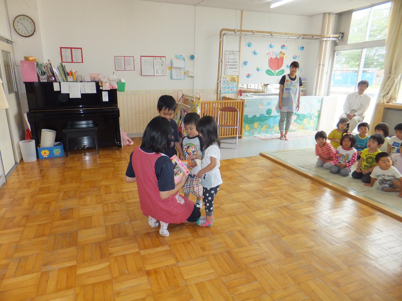 お姉さん先生からは、”ごあいさつ”についてのペープサートの発表がありましたよ。