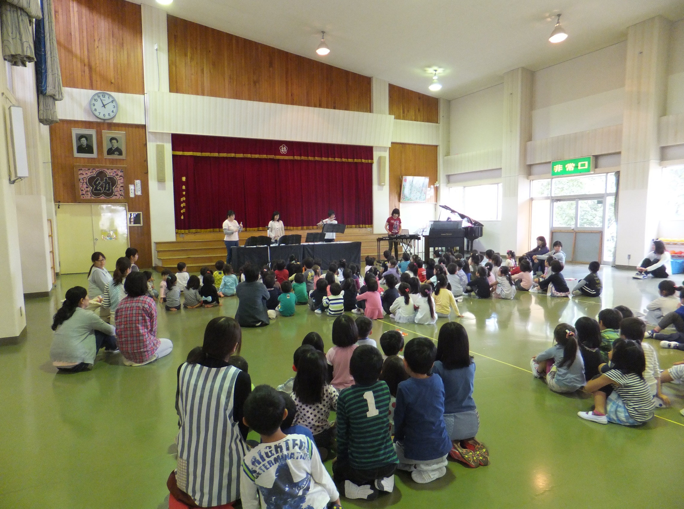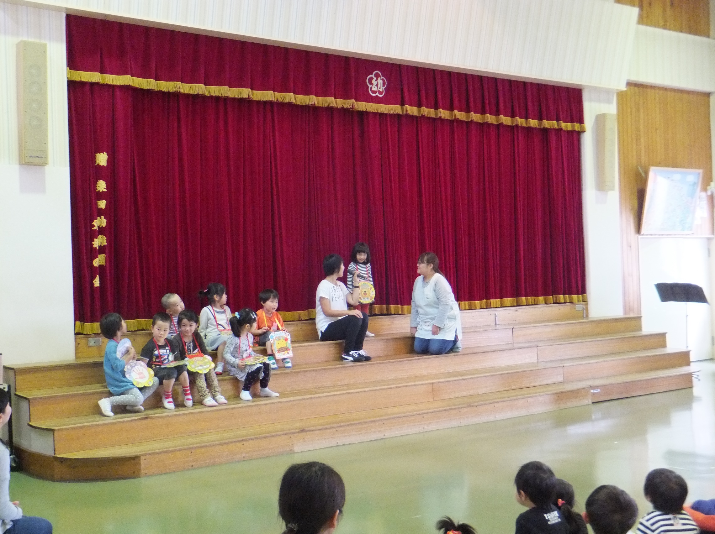 9月生まれのお友達の誕生会でした。保育園からは一人でしたが、元気にお名前をお話ししていましたよ。お楽しみは幼稚園の先生によるコンサートでしたが、妖怪ウォッチやアナと雪の女王などの曲で大盛り上がりでしたよ。最後はみんなで妖怪ウォッチの曲に合わせて踊り、楽しみました。