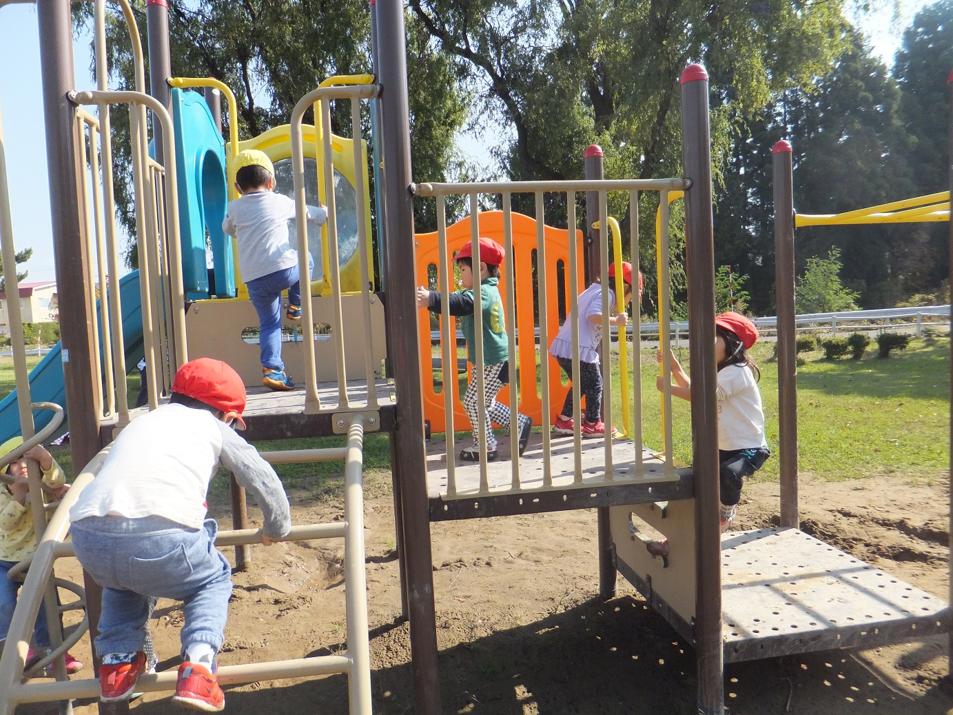 つくし組さんとちゅうりっぷ組1歳児さんはグラウンド、ちゅうりっぷ組2歳児さんとたんぽぽ組さんは三岳公園、さくら組さんとすみれ組さんはりんご公園へ行きました。