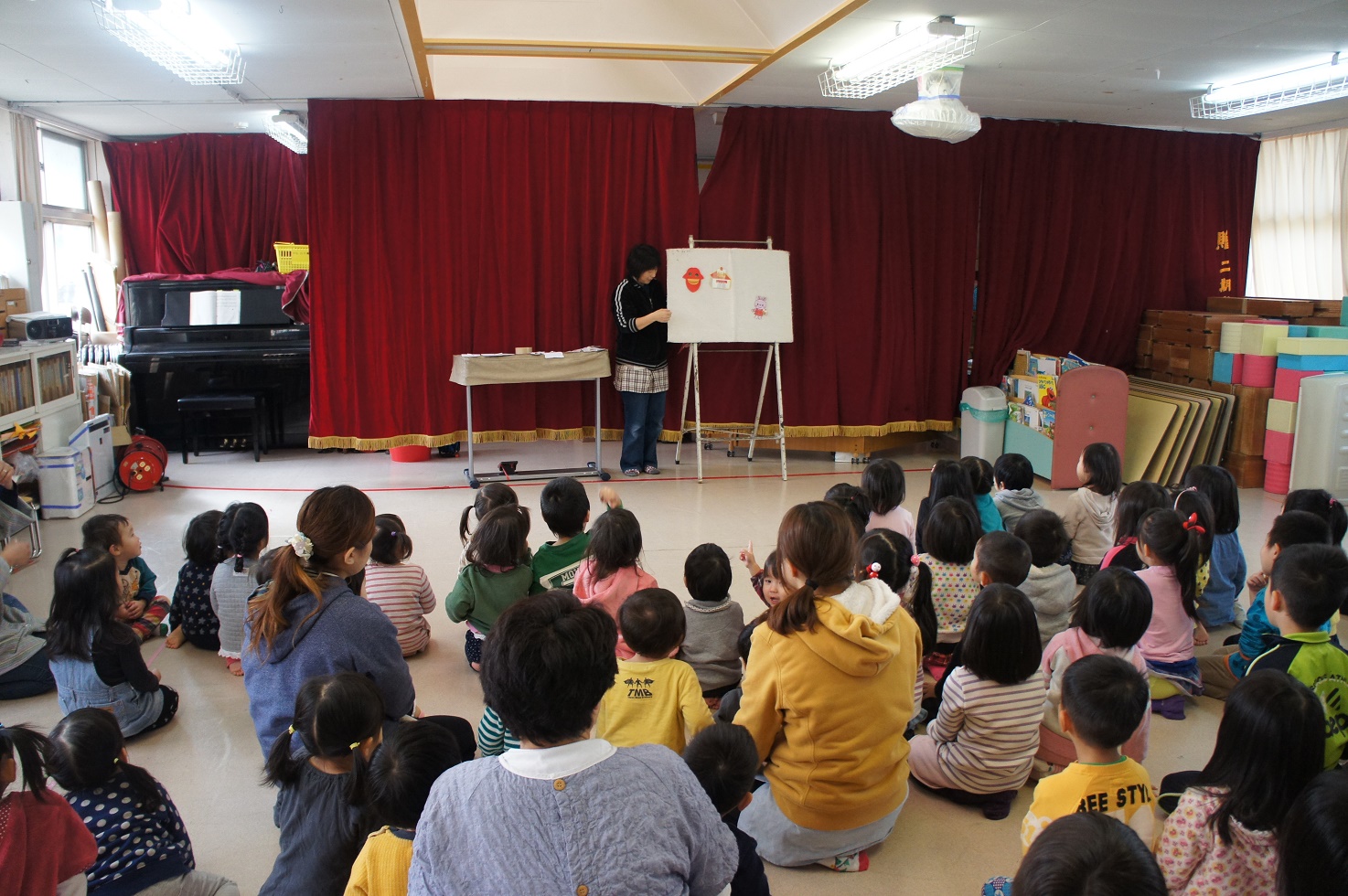 お楽しみの防犯のパネルシアターを見ていると、「うさぎちゃん、知らない人についていっちゃダメだよ~」と子ども達から声があがっていましたよ。