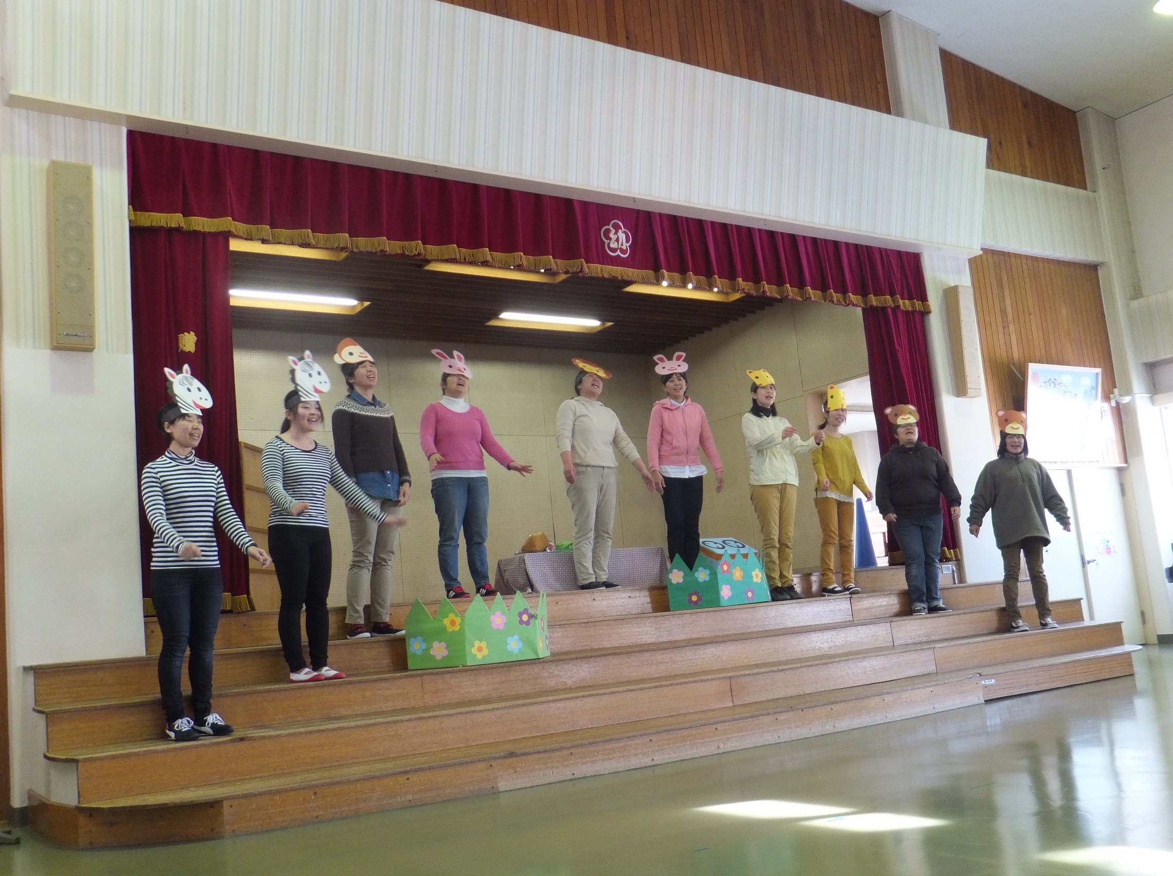 3月生まれのお友達は、入場する時にドキドキしている様子でした。インタビューで名前を呼ばれると笑顔でお返事することができましたよ。お楽しみのオペレッタ「おなかのへったライオン」では、ライオンがさるやくまなどの動物を追いかけるたびに笑いが起きていました。小さいお友達は、ライオンに驚いていましたが、誕生会を楽しんでいましたよ。