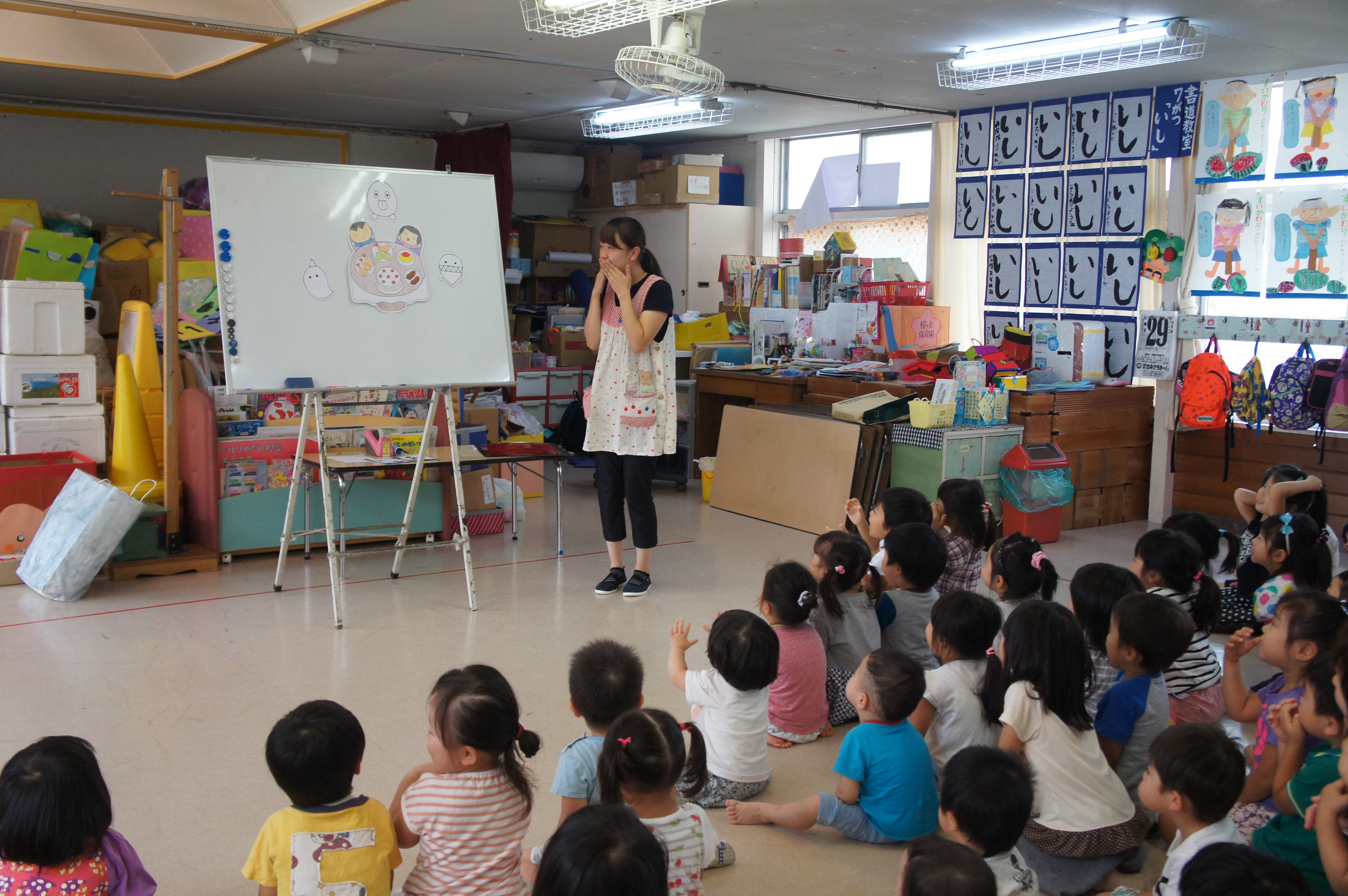 おたのしみのパネルシアターでは画用紙から「おばけ」が出てくるたび歓声があがり集中して見ていました。