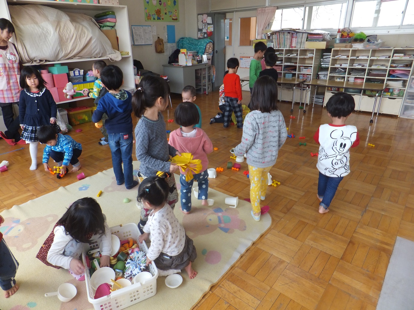 すみれ組のお部屋ではままごと遊びやスターブロックで遊び賑やかでした。