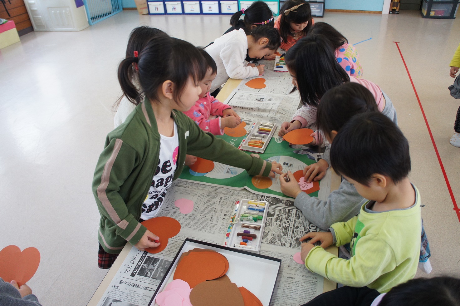 広告紙遊びコーナー、まんまるウサギ製作コーナー、サーキットコーナー、バレンタインチョコ&クッキー製作コーナーの4つのコーナーで遊びました。 どのコーナーも以上児・未満児共に人気で繰り返し遊ぶ様子が見られていましたよ。