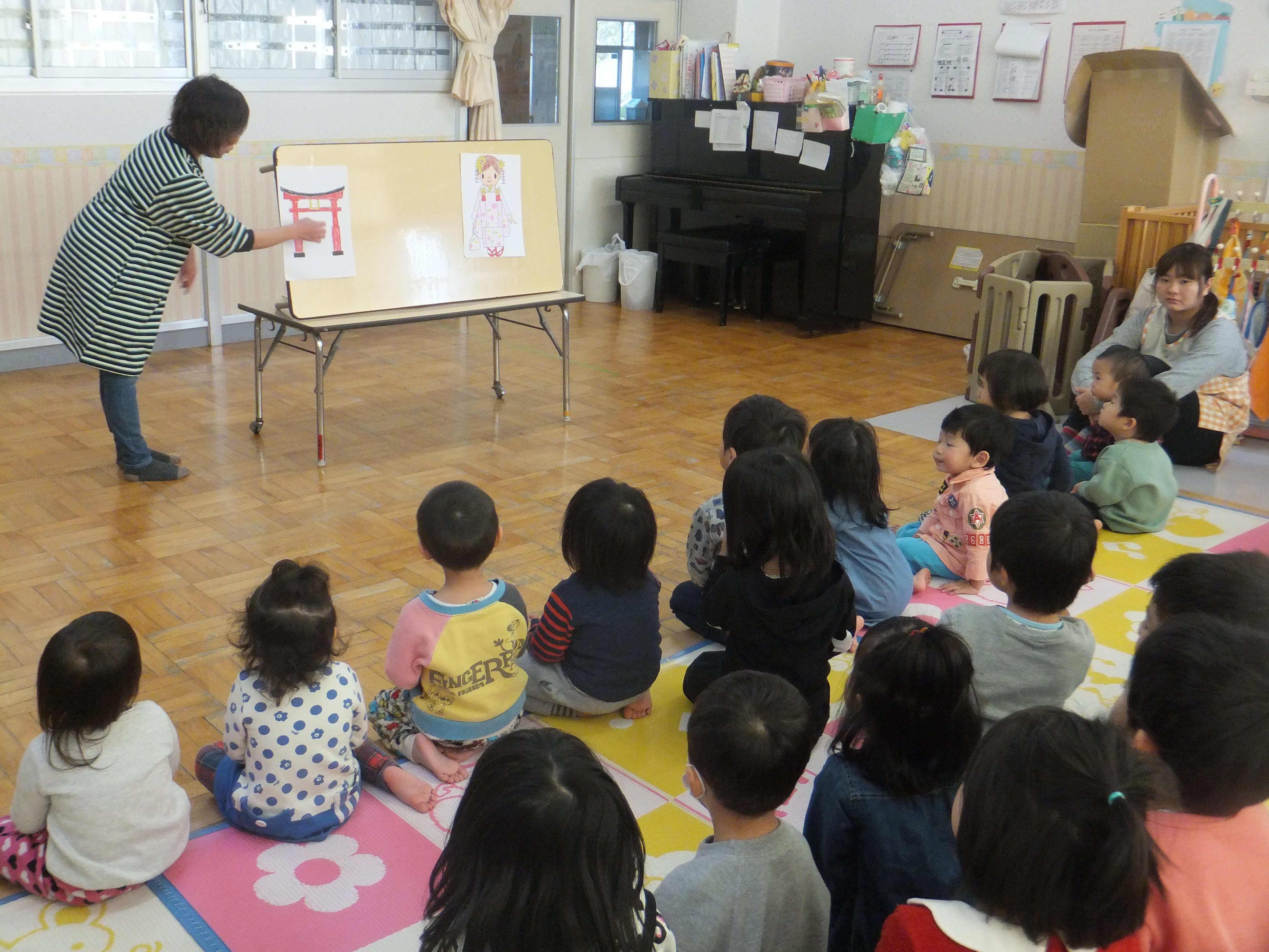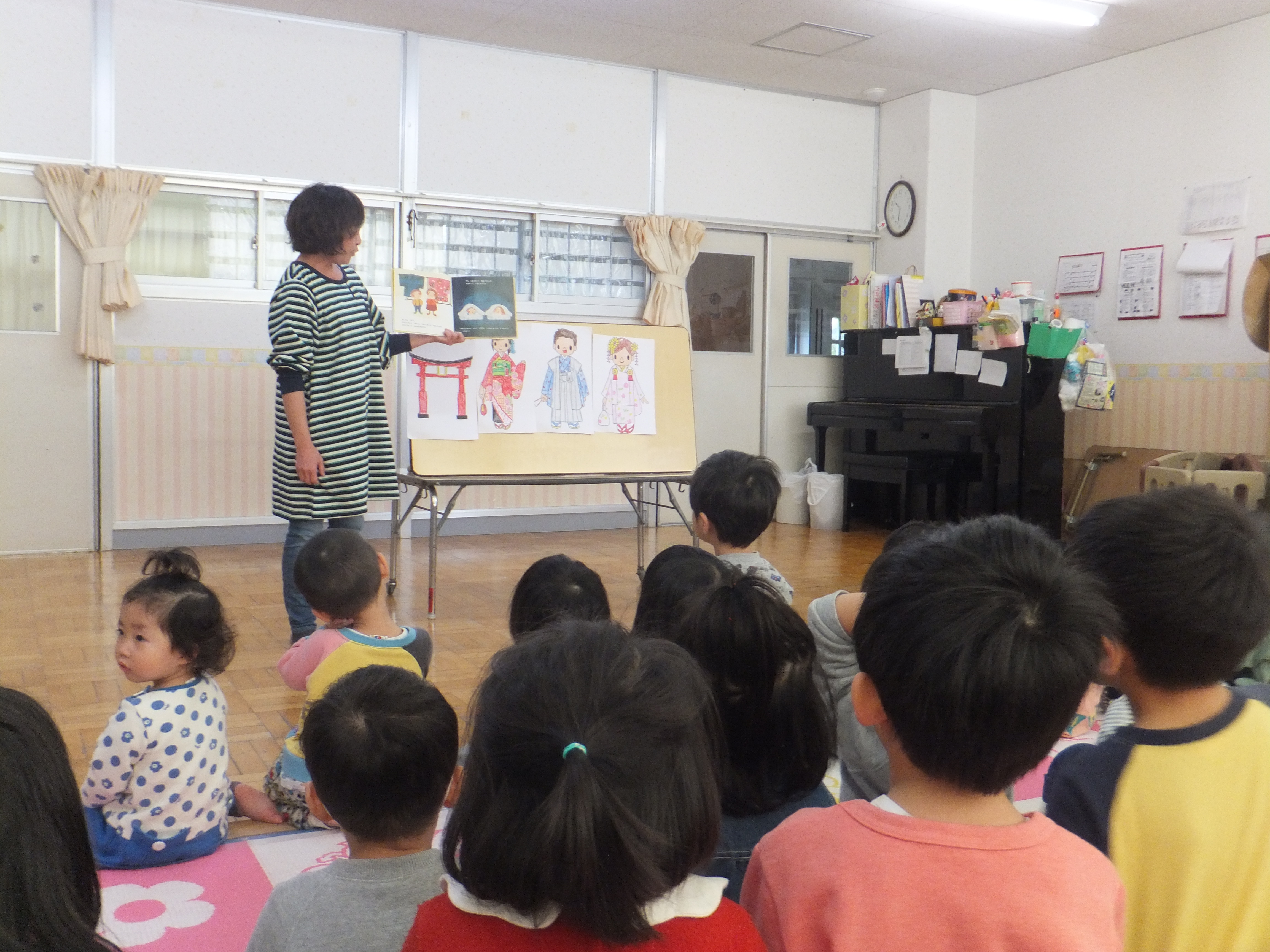 七五三集会がありました。七五三の由来を興味津々で聞いていました。千歳飴が紹介されると「知ってる」や「どんな味がするんだろう」という声が聞こえてきましたよ。