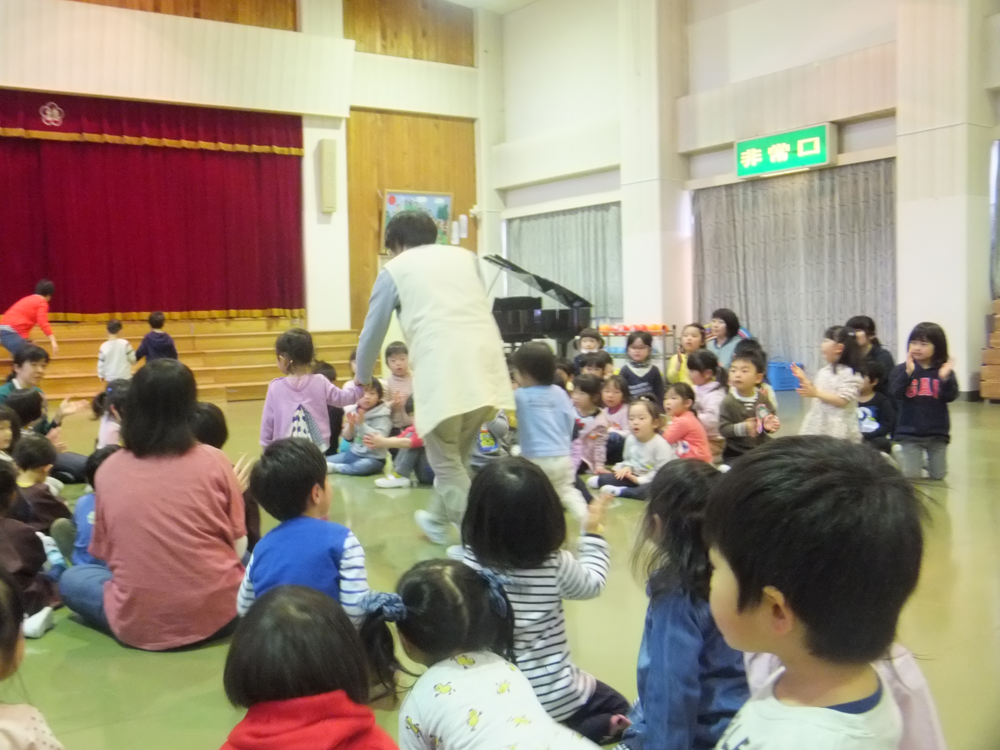 今年度初めての誕生会でした。4月生まれのお友達は、仲良く手をつなぎ嬉しそうに入場していましたよ。インタビューは、少しどきどきしながらも、しっかりと答えていました。