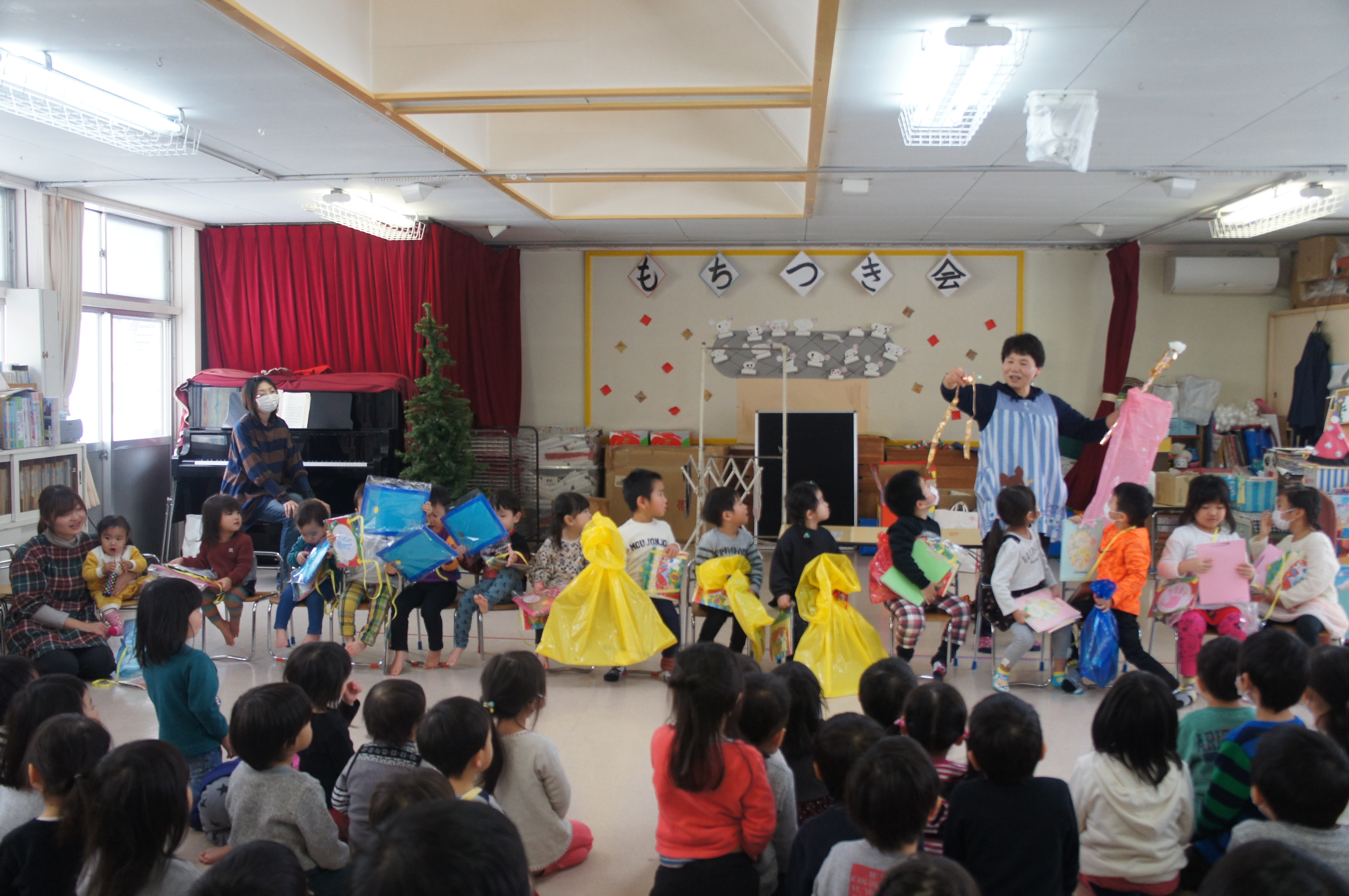 12月の誕生児は15名とたくさんで賑やかな誕生会となりました。元気に名前を言ったりインタビューに答え,楽しく参加していました。お誕生日のプレゼントやおたのしみもとても喜んで見ていましたよ。