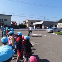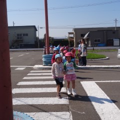 初めは緊張でなかなか1歩が踏み出せずにいた子どもたちですが、何回かやっていくうちに、よく周りの状況を見ながら上手に横断していましたよ♪