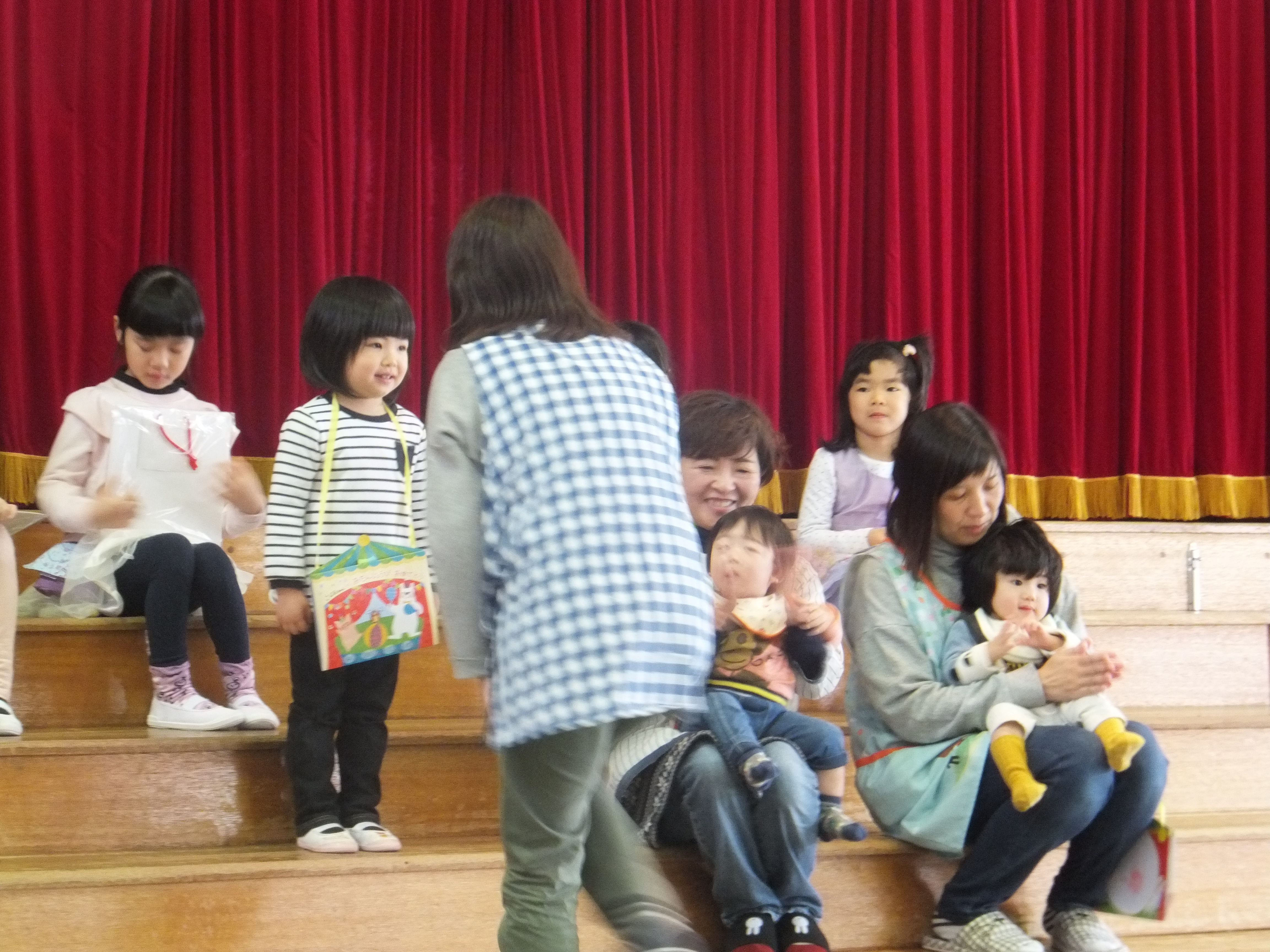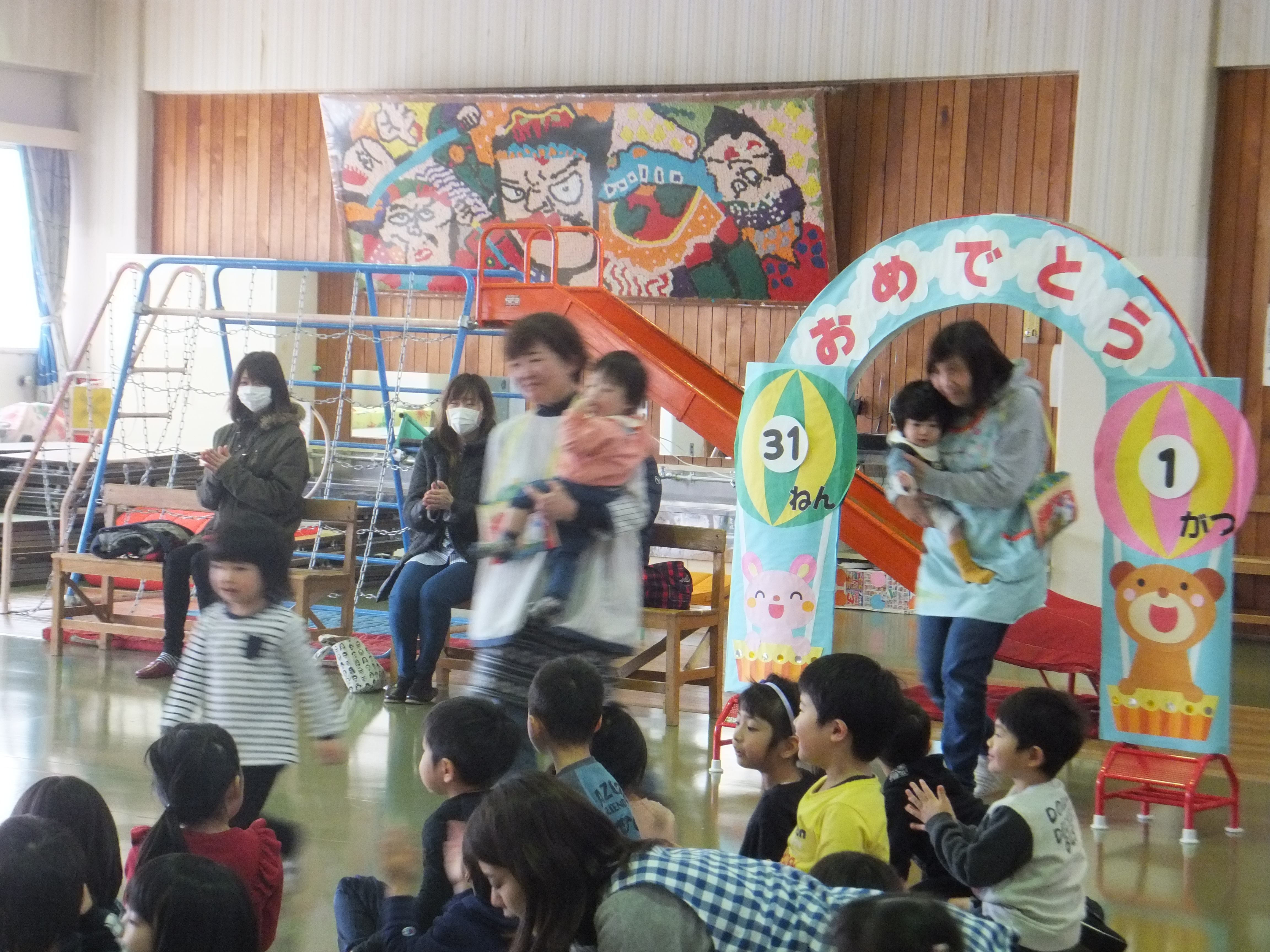 今日は1月生まれのお友だちの誕生会がありました。 つくし組さん2名、たんぽぽ組さん1名のお友だちが参加しました。たんぽぽ組さんの子は、インタビューにしっかりと答え、つくし組さんはニコニコのご機嫌な様子でした。 おたのしみでは影絵による「おじいさんとおばけ」というお話を見ました。おばけの登場に少し怖がる子もいましたが、みんな最後まで楽しんで見ていましたよ。