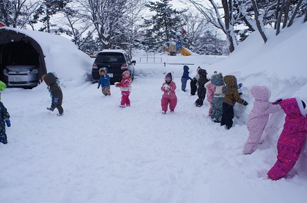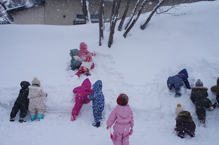 雪だるまを作ったり坂を滑ったりと冬ならではの遊びを十分に楽しむことが出来ました。