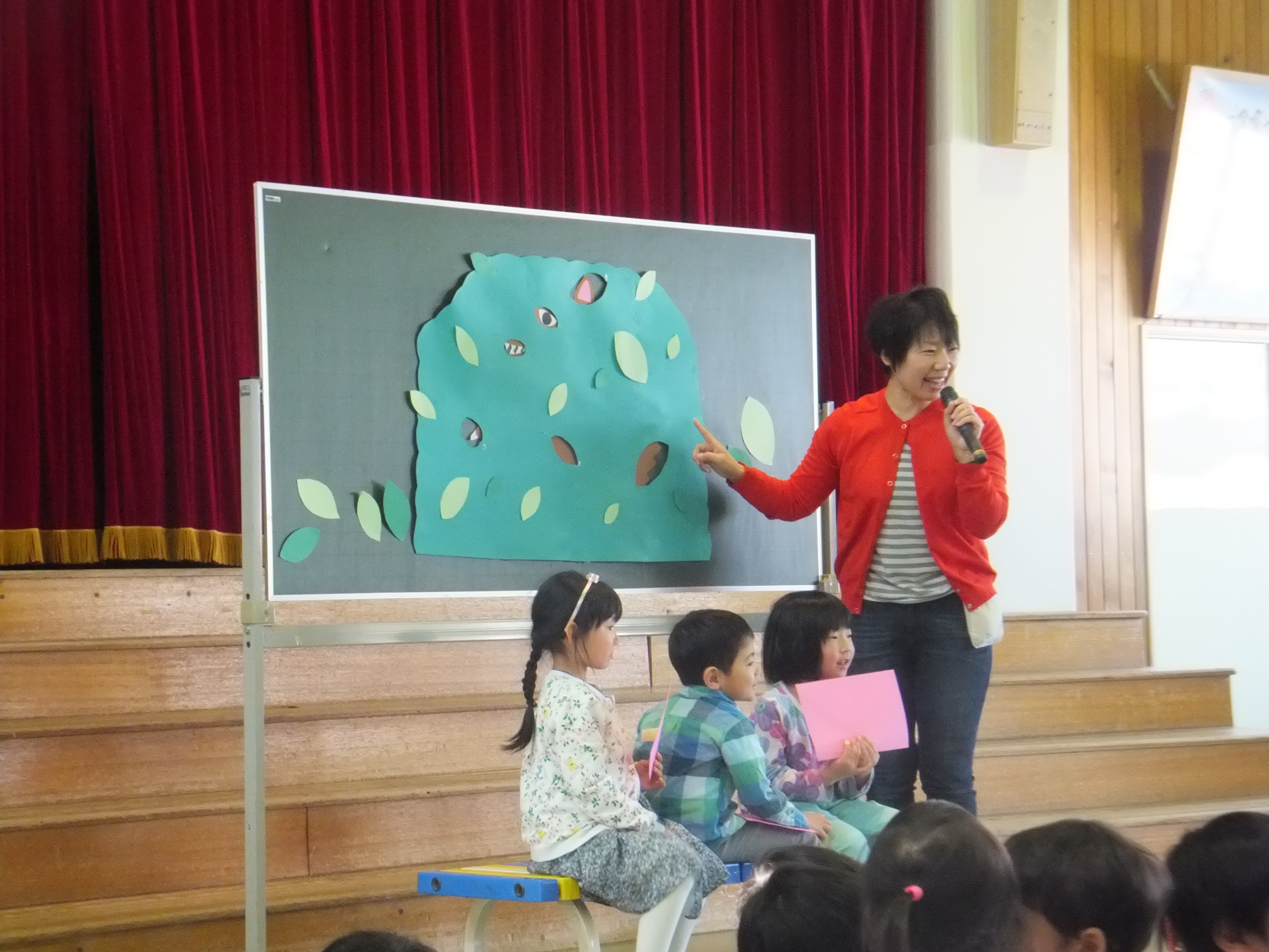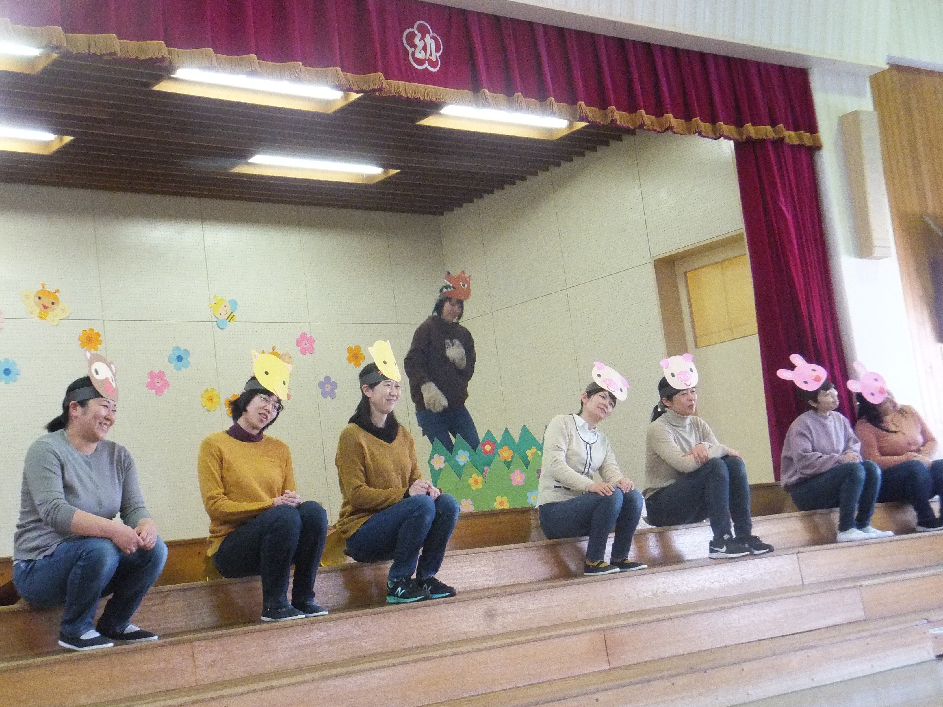 今日は、3月生まれのお友だちのお誕生会がありました。保育園では、3月生まれのお友だちはいませんでしたが、みんなで幼稚園のお友だちをお祝いしました。おたのしみでは、「ともだちほしいな おおかみくん」のオペレッタを見ました。みんな、とても楽しんで見ていましたよ。