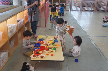 今年度初めての自由保育でしたが、一人ひとり好きなコーナーや廊下の滑り台などで楽しんでいましたよ。 異年齢児とも関わり合い、大きいクラスの子が小さいクラスの子の手を引き一緒に遊ぶ様子も見られていました。