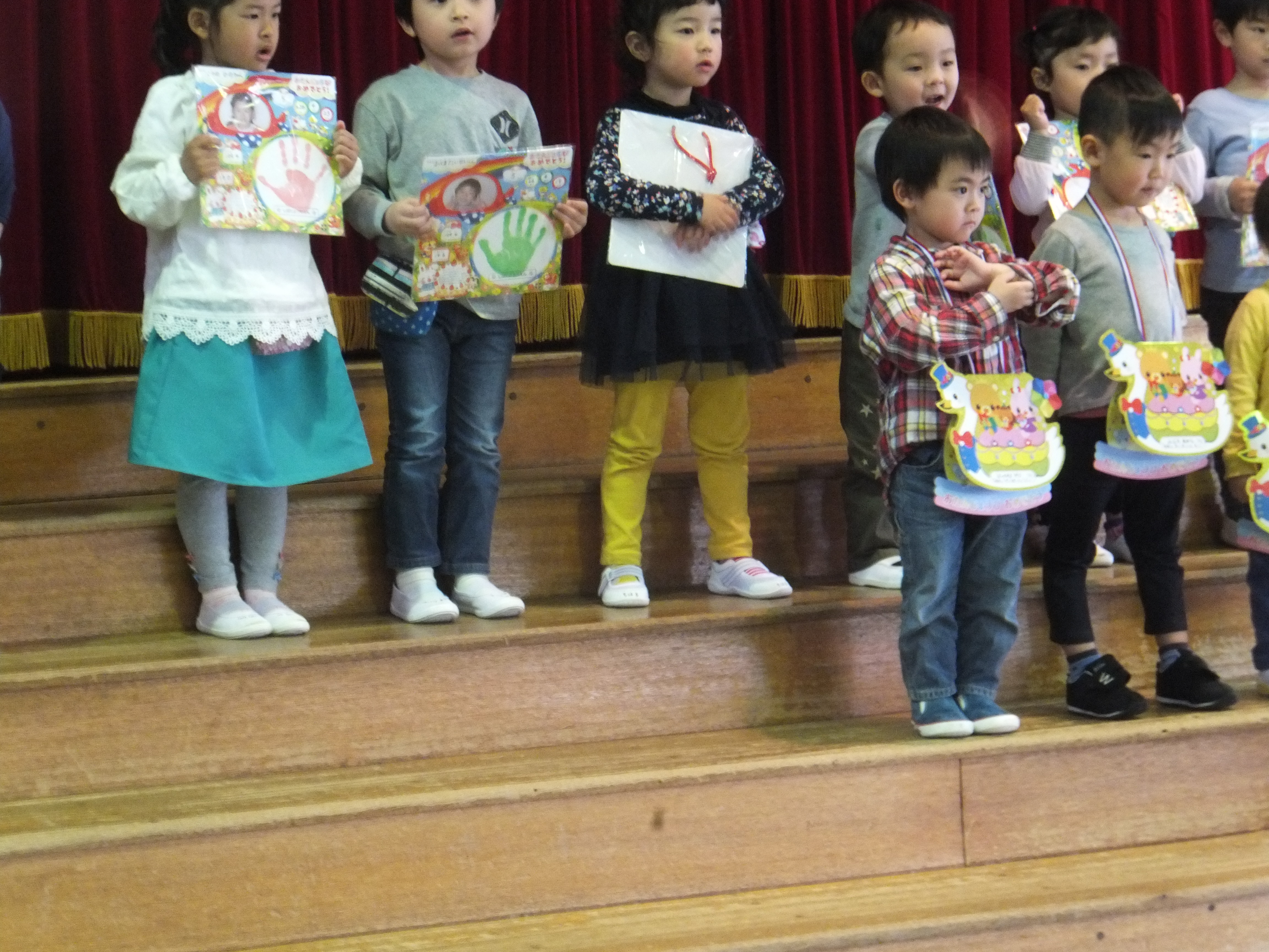 今日は4月生まれのお友だちのお誕生会がありました。保育園の4月生まれのお友だちは3名でした。