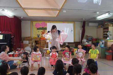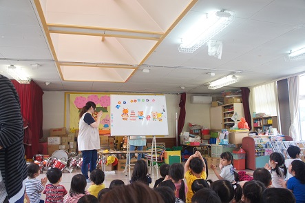 誕生児の子は少し照れながらもしっかりと自分の名前とインタビューに答えることができ、その後は各クラスからのプレゼントをもらいとっても嬉しそうでした。お誕生日にちなんだパネルシアターも喜んで見ていましたよ。
