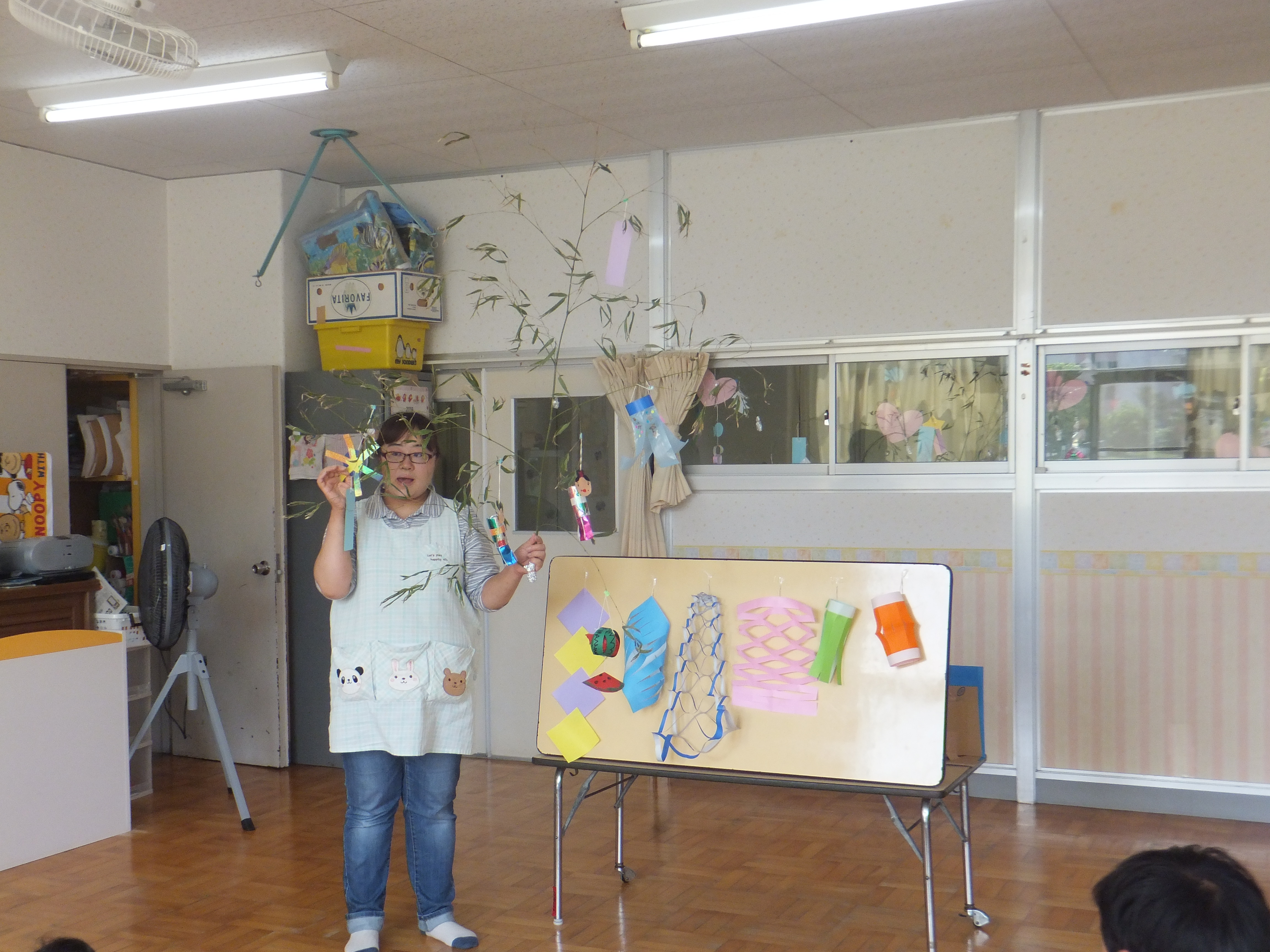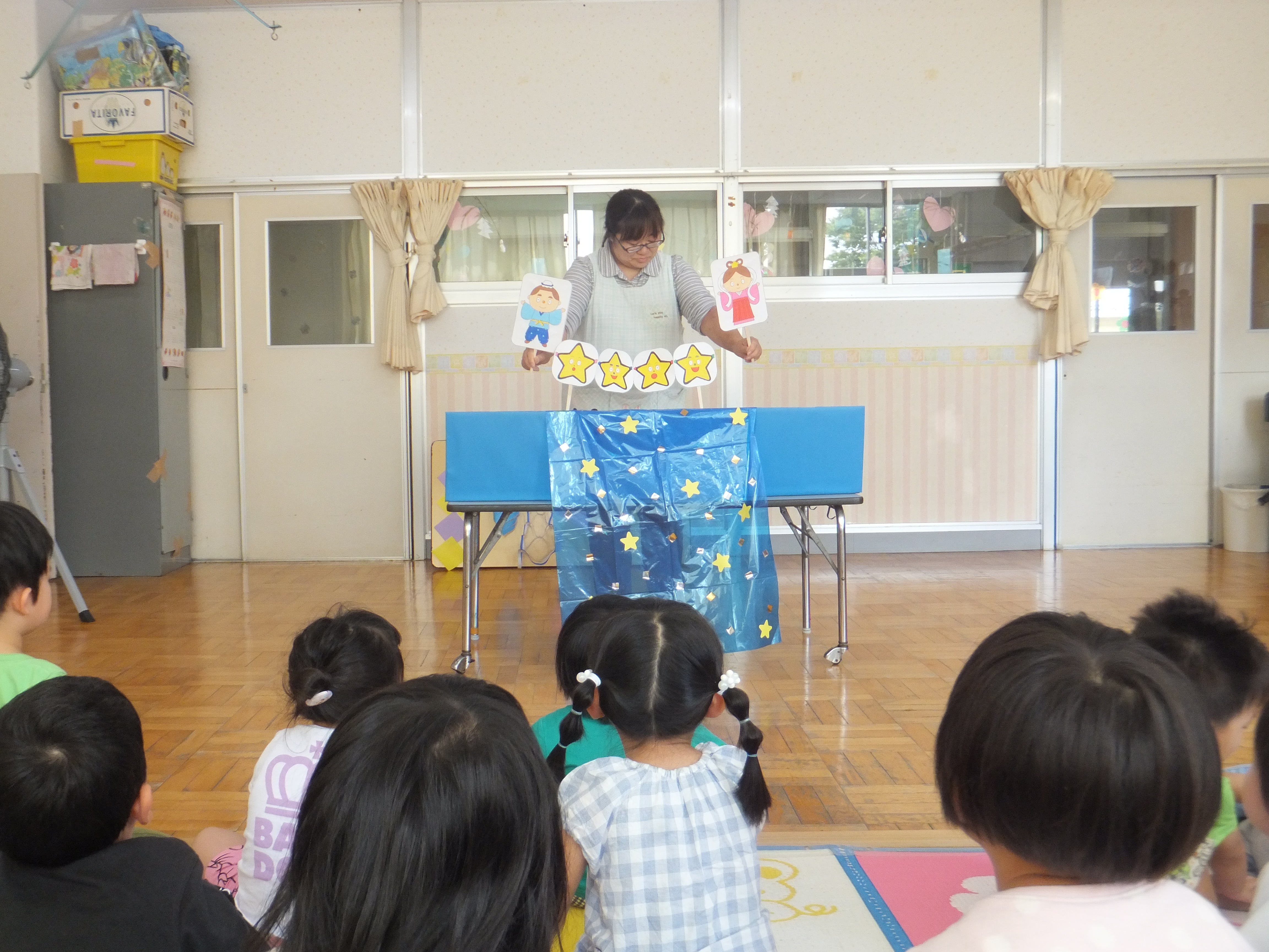 今日は、七夕集会がありました。七夕の由来や飾りに込められた昔の人の思いについてのお話を聞いたあと、各クラスの笹飾りの紹介がありました。お楽しみでは、「ころりん・ピッカリ たなばたまつり」のペープサートを楽しみながら見ていました。最後に記念写真をとって終了しました。明日も晴れて、夜、天の川が見られるといいですね。みなさんの願いが叶いますように。
