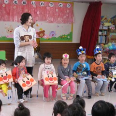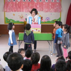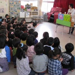 誕生児さんは前に出て、お名前や好きな遊び、好きな食べ物などを元気にお話していました。そして、お友達からプレゼントをもらうととっても嬉しそうな表情を見せて喜んでいました。おたのしみの「どうぶつさんのハッピーバースデー」も、最後まで楽しそうに見ていましたよ。