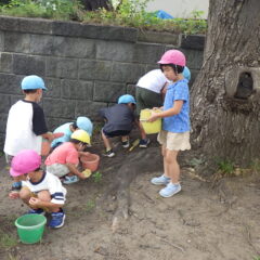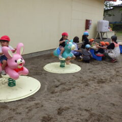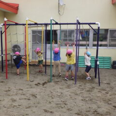 お天気が良かったので、全園児、園庭で遊びました。砂遊びをしたり、園庭内のジャングルジムやすべり台などの固定遊具で体を動かして遊びました。ルールを守り異年齢児との関わりをもちながら笑顔で遊んでいました。