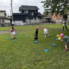中央公園で運動教室に参加してきました。 1人1人ボールに興味を持って、楽しく取り組んでいました!! 自分の順番が来るまでの間は、友だちの応援をしたりとコーチにも褒められ、嬉しそうでした!!
