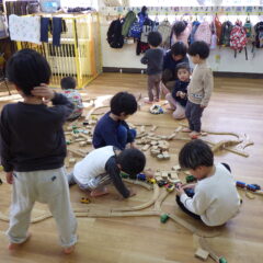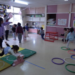 また、異年齢児との交流も多く見られ、誘い合ったり優しく声を掛けて一緒に遊んだりと、微笑ましい姿も見られていました。