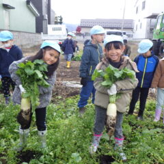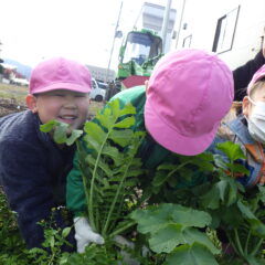 すみれ組・さくら組さんが、こども農園へ出掛け大根掘りをしました。