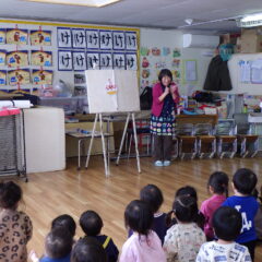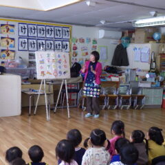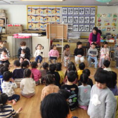 おたのしみのパネルシアター「すうじのうた」は、みんなで歌ったりクイズをして楽しんで参加しながら見ていました。