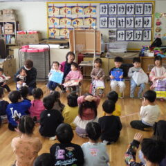 小さいクラスの子も多くいたので、ドキドキが大きくなかなか名前やインタビューに答えられないこともありましたが、さすが大きいクラスのお友達は立派に答えていました。クラスのお友達からプレゼントをもらうと、「ありがとうございました❤」と頬を緩めていました。