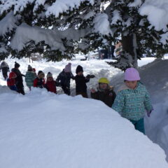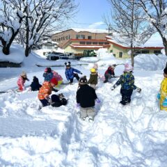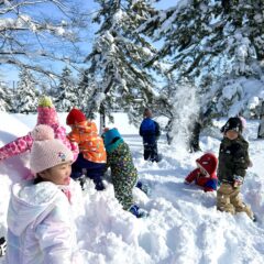 天気も良かったので、大きいクラスの子ども達は中央公園で雪遊び、小さいクラスの子ども達は雪道のお散歩をしました。たくさんの雪に大はしゃぎの子ども達!雪まみれになりながら思いきり楽しんでいました。小さいクラスの子ども達も、滑って転びそうになりながらも楽しんでお散歩しながら雪の感触を味わっていました。