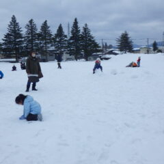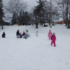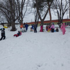 お天気が良かったので、全クラス中央公園で雪遊びをしました。異年齢児との関わりをしながら、そりすべりや雪の感触を楽しんで遊ぶ様子が見られていました。