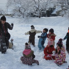 ソリ遊びや、自由遊びでは雪だるま作りや雪合戦をして、とても嬉しそうなさくら・すみれ組さんでした。